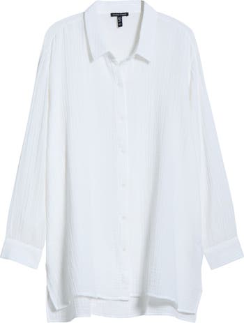 A classic spread collar furthers the modern-chic style of this textured button-up shirt fashioned from organic cotton.
