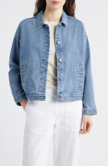 A foundational piece for any wardrobe, the classic denim jacket receives the Eileen Fisher treatment via a blend of organic and recycled cotton fibers kissed with stretch for subtle give and shape retention. A spread collar and clean-lined design move easily throughout your closet and the relaxed cut layers with intention, not bulk.