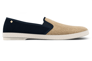 Cotton Canvas and Raffia Textured fabric with raffia effect and cotton canvas Canvas lining and terry cloth lining Gold-tone metal rivet Grosgrain ribbon trim Comfort elastics Removable leather insole Cotton band around the sole PVC sole Made in Spain Note: If slightly snug, the material will stretch. If between sizes, we recommend going with the larger size. Composition: Upper: 100% polyethylene Quarters: cotton canvas Upper lining: 100% cotton canvas Quarter lining: 100% organic cotton terry cloth Insole: 30% lambskin leather, 40% carbon latex, 30% cork Outsole: 100% PVC Rivieras is committed to more responsible fashion. As part of our traceability project in partnership with Crystal Chain, we share full transparency on the sourcing and manufacturing of our garments. To learn more, scan the QR code on the label inside the garment.