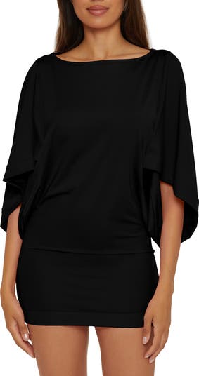 Follow the sound of the blender to the bar in this cover-up dress fashioned with a versatile solid hue and fluttered sleeves.