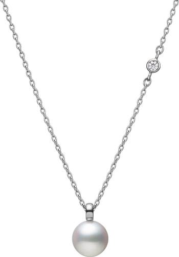 This minimalist pendant necklace is highlighted by a central cultured pearl and a bezel-set diamond accent.