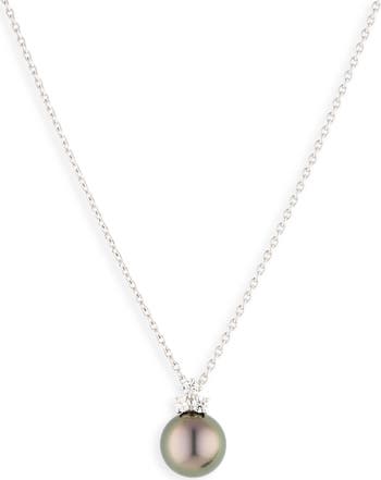 Classic Diamond & Black South Sea Cultured Pearl Pendant Necklace