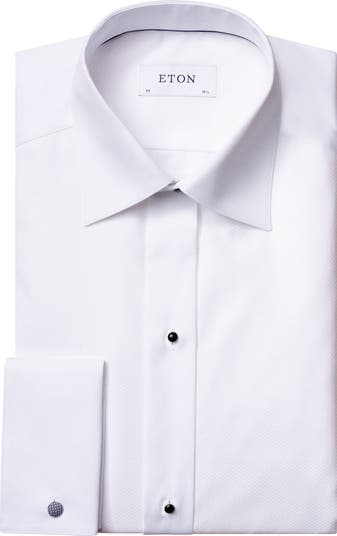 A staple of any black-tie wardrobe, this white cotton tuxedo shirt features a subtly textured bib and French cuffs you can fasten with your favorite cuff links. The crease-resistant fabric keeps you looking crisp and sharp no matter how long your formal events last.