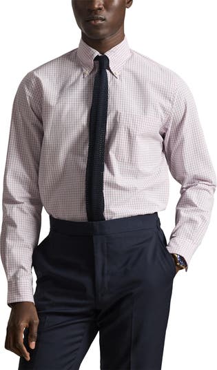 Classic, comfortable, and easy to style up or down, this shirt tailored from crisp cotton poplin features a small check pattern and a buttoned collar that keeps you looking smart even when you don't have to. A fuller cut in the chest and slightly lower armholes give you room to move when you're dressed to impressed.