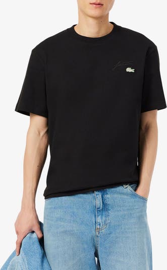 A staple everyday T-shirt made of fine cotton-jersey gets the Lacoste signature touch with a croc at the chest.