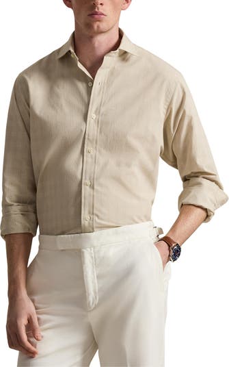 Classic, comfortable, and easy to style up or down, this shirt tailored from crisp cotton poplin features a pale glen check and a pointed collar that keeps you looking smart even when you don't have to. A fuller cut in the chest and slightly lower armholes give you room to move when you're dressed to impressed.