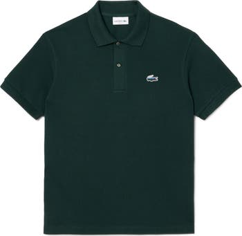 Subtly textured cotton piqué brings breathable comfort to a polo with a landscape-patterned crocodile logo inspired by the vistas of René Lacoste's beloved Chantaco golf club. The solid coloring pairs with practically everything in your casual wardrobe to add a sporty finish to a going-out look.
