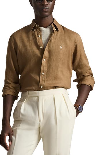Lightweight, subtly rumpled linen both elevates and relaxes a shirt that features an iconic pony logo embroidered on the chest and a lower hem that works tucked or untucked. The buttoned collar and traditional tailoring keep you looking smart even when you don't have to.