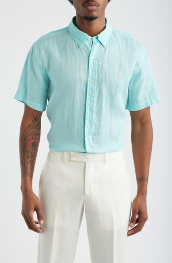 Classic Fit Linen Short Slleeve Button-Down Shirt