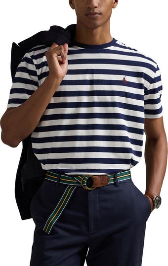 Rings of crisp, yarn-dyed stripes ladder up a T-shirt made of breathable cotton with a fuller cut and lower armholes to keep you moving in comfort. The iconic pony rider embroidered on the chest brings a sporty look and a timeless finish to any casual outfit.