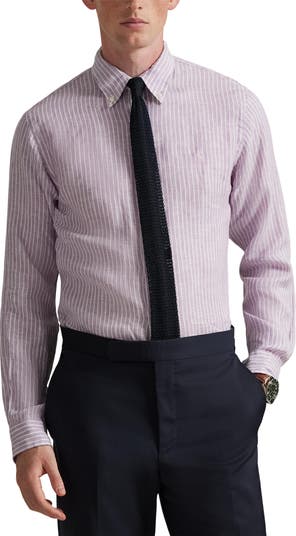 Iconic since its '71 debut, an embroidered polo rider hints at the preppy heritage of this breathable, lightweight linen shirt refined with yarn-dyed stripes and lustrous shell buttons.