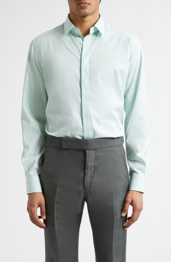 This shirt balances structure and comfort in cotton poplin woven with natural stretch. The hidden-button placket removes visual noise for a modern finish that adapts to whatever the day calls for.