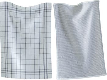 Classic Grey Cotton Dishtowel Set of 2 Checked Solid