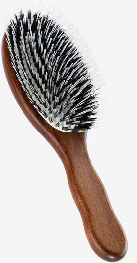 Designed to protect the hair's natural beauty by reducing damage and breakage, the ACCA KAPPA extension brush has been designed specifically with Hair Extensions in mind. Gently polishing, the extension brush is also fantastic for thick or curly hair, featuring natural bristles that help polish and add shine. Gliding through hair without pulling or stretching, the twin monofilament in soft nylon detangles the hair without damaging the joint between natural hair and the extensions. Longer than most traditional bristles, the filament’s additional length effectively penetrates even thicker hair to help tidy from the roots to the ends. Ideal for medium to long hair. Dimensions Overall length 220mm, Length of handle 95mm, Width 60mm Please note, there may be a small level of tolerance within these dimensions. How to Use Starting from the mid-section, or few inches from the end of your hair, brush down the hair’s length. Moving the brush further up a couple of inches at a time, continue brushing downwards until you reach the scalp and the hair is fully detangled. To finish, gently stimulate the scalp by running the brush over the scalp in the direction of the hair’s fall a few times.