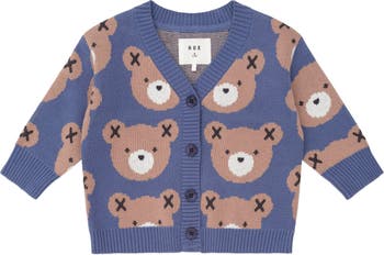 Meet the 'wear everywhere' cardi. This lightweight knit cardi is made from premium organic cotton in a deliciously soft jacquard knit. Featuring front pockets and our custom Huxbear print, it'll keep them snug as a bug - or a bear.
