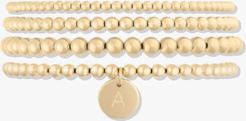 Classic Initial Coin 14k Gold Filled Bead Four Bracelet Stack