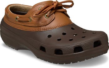 Pebbled vegan leather and boat-shoe lacing bring a nautical twist to this easygoing clog cushioned with contoured Croslite® for lightweight comfort on and off the dock.