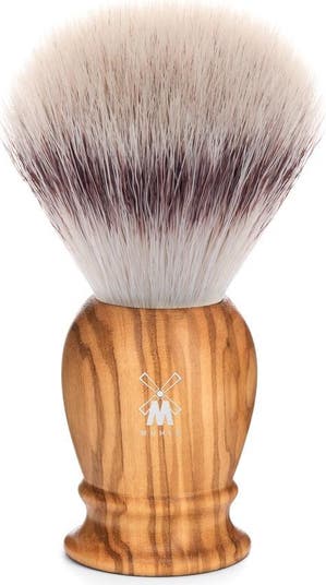 Description Shaving brush with Silvertip Fiber® Ring size L: 23 mm Handles made of olive wood The Material - Olive wood Since ancient times, olive wood has been valued for its outstanding material characteristics and warm coloring. It is to be found throughout the Mediterranean region and has been used for centuries to make durable goods or artistic objects. The wood we use must be dried carefully for months before the handles are turned. We then sand the surfaces, seal them with oil and polish them to a silky finish. This brings out the gentle, honey-colored grain of the wood particularly well. The Brushhead - Silvertip Fiber® The high-quality synthetic Fibers represent a world first of our own invention. We offer a synthetically produced premium quality whose material characteristics are analogous to those of the precious natural hair, silvertip badger. The majority of the users even say that this quality actually provides better performance characteristics than the natural hair. 'Silvertip Fiber®' is very soft at its fine tips, but somewhat more stable than natural hair in the middle section. These characteristics produce a pleasant, soft sensation on the skin when the lather is applied, without having to forgo the desired firmness of the hairs in the lathering process. In daily use, the manually processed Fibers are less sensitive than natural hair as they dry more quickly and are resistant to shaving soaps and creams. The completely vegan Fibers are also somewhat easier to use than natural hair as they produce a particularly creamy and thick lather from a small amount of shaving soap or cream, which is used much more sparingly as a result.