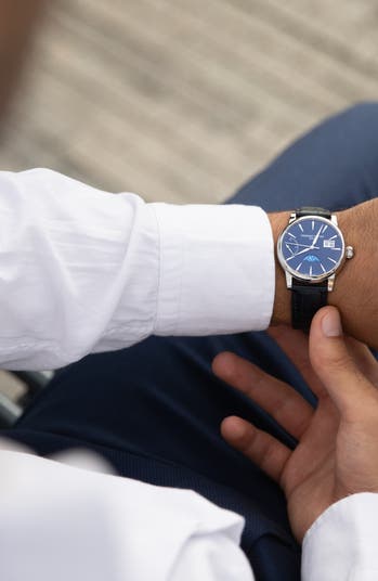 Classic Manufacture Blue Power Reserve Big Date Automatic Leather Strap Watch, 40mm