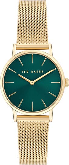 Slender stick indexes underscore the minimalist aesthetic of a timeless watch fitted with a polished mesh strap and logo-debossed closure.