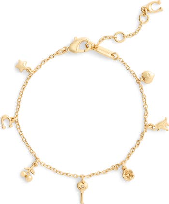 Signature motifs subtly brand this golden bracelet that adds glinting movement to your stack.