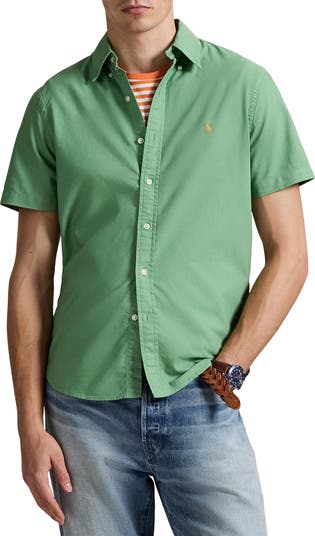 A garment-dyed wash softens this button-down shirt tailored from cotton oxford cloth in a classic fit and finished with a pony embroidered at the left chest.