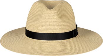 A grosgrain logo ribbon trims this sunny-day straw Fedora that packs perfectly for vacation.