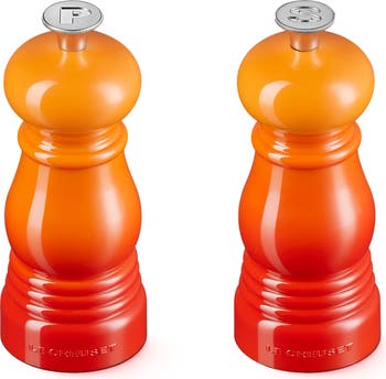 The perfect size to keep at the table, this salt mill and pepper mill feature classic colors and the brand's iconic triple-stripe detail. Each mill contains a powerful grinder that resists corrosion, and the pepper mill can be adjusted from a fine grind to a coarse grind with a turn of the knob. Each mill is finished with an acrylic coating that won't absorb grease or odors and is easy to wipe clean.