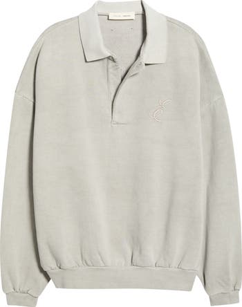 A smart collar polishes a weekend-official sweatshirt made from soft cotton fleece.