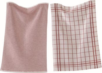 tag Classic Red Cotton Dishtowel Set of 2 Checked Solid Terry, Alternate, color, Red