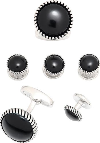 Don't head out in your tux to a black tie event without making sure you complete the look with a modern, sleek cufflink and stud set. These round cufflinks and matching studs give you a rock star industrial edge.