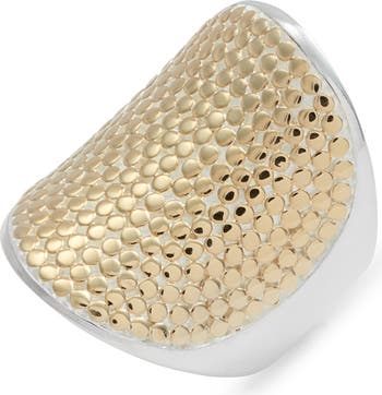 A traditional Balinese dot pattern swirls and swirls around this handmade saddle ring polished to perfection.