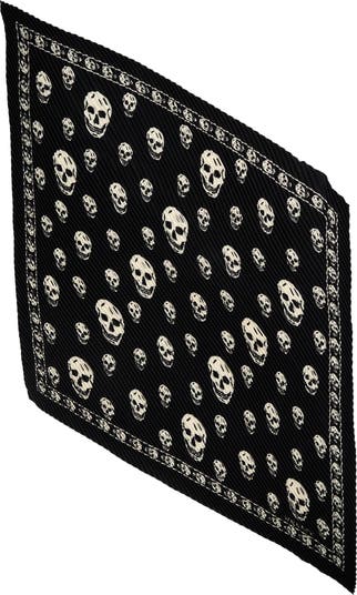 McQueen's macabre edge reigns supreme in this meticulously pleated scarf, where signature mixed-scale skulls float against a canvas of Italian-silk twill.