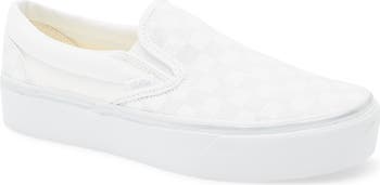 Dual goring at the inset maintains the unmistakable silhouette of this checkerboard canvas slip-on sneaker lifted by a chunky platform sole.