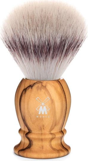 Description Shaving brush with Silvertip Fiber® Ring size S: 19 mm Handles made of olive wood The Material - Olive wood Since ancient times, olive wood has been valued for its outstanding material characteristics and warm coloring. It is to be found throughout the Mediterranean region and has been used for centuries to make durable goods or artistic objects. The wood we use must be dried carefully for months before the handles are turned. We then sand the surfaces, seal them with oil and polish them to a silky finish. This brings out the gentle, honey-colored grain of the wood particularly well. The Brushhead - Silvertip Fiber® The high-quality synthetic Fibers represent a world first of our own invention. We offer a synthetically produced premium quality whose material characteristics are analogous to those of the precious natural hair, silvertip badger. The majority of the users even say that this quality actually provides better performance characteristics than the natural hair. 'Silvertip Fiber®' is very soft at its fine tips, but somewhat more stable than natural hair in the middle section. These characteristics produce a pleasant, soft sensation on the skin when the lather is applied, without having to forgo the desired firmness of the hairs in the lathering process. In daily use, the manually processed Fibers are less sensitive than natural hair as they dry more quickly and are resistant to shaving soaps and creams. The completely vegan Fibers are also somewhat easier to use than natural hair as they produce a particularly creamy and thick lather from a small amount of shaving soap or cream, which is used much more sparingly as a result.