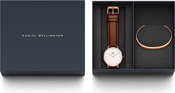 Form and function beautifully coalesce with this premium quartz-powered watch featuring a clean, minimalist dial and rich leather strap. The timepiece is elegantly packaged in a box and also comes with a logo-engraved cuff bracelet.