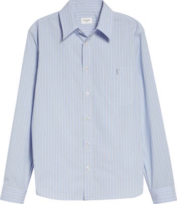 The house-signature Cassandre logo originally designed in 1961 is embroidered at the chest of this piped cotton-poplin shirt streaked with slender stripes.