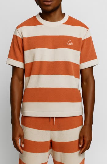 Supersoft cotton terry keeps you feeling comfortable in this classic-fit T-shirt flaunting bold stripes.
