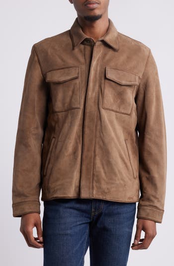 Buttery-soft suede elevates this shirt-jacket crafted in a layering-friendly fit with hidden snaps for a clean-lined, unfussy look.