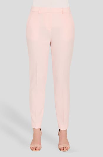 Crisp vertical creases front these polished stretch-kissed pants punctuated with tapered hems.