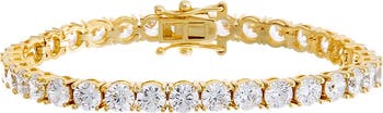 Bring on the classic sparkle in Adina Eden's iconic Eden Tennis Bracelet, featuring a series of dazzling CZs set into a delicate 14K gold-plating or sterling silver tennis chain. Timeless and refined, this gem flaunts all the sophistication and brilliance of the Adina Eden collection. Perfect for rocking solo or stacking with charms and chains, a piece like this makes any ensemble you wear glitter.