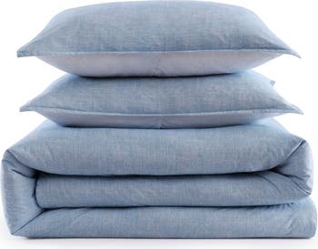 Stripes and chambray bring a laid-back atmosphere to your cozy retreat when you build your bedding ensemble around this soft, breathable cotton-percale set.