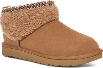 Curly genuine shearling and contrast UGGbraid™ topstitching adds pretty texture to the abbreviated shaft of this fan-favorite bootie. The style delivers extra comfort with a lining crafted from both genuine shearling and UGGplush, a moisture-wicking textile made from a wool-rich blend but crafted to feel and wear like genuine shearling.