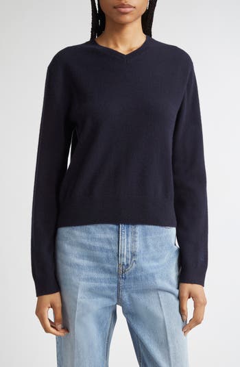 Soft, featherweight cashmere furthers the luxe look and feel of this capsule-worthy V-neck sweater discreetly detailed with the Swedish design duo's embroidered monogram on the left sleeve.