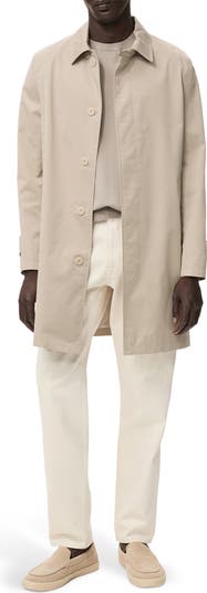 Minimalist to the bone, this trench coat frames a clean spread collar over a hidden-button front and lets the matte twill do the talking with a rain-ready finish that moves from commute to gallery without fuss.