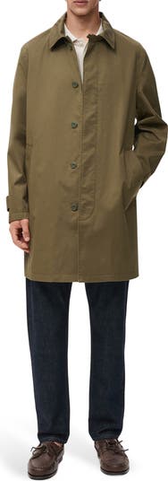 Minimalist to the bone, this trench coat frames a clean spread collar over a hidden-button front and lets the matte twill do the talking with a rain-ready finish that moves from commute to gallery without fuss.