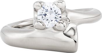 - Highlights a brilliant-cut cubic zirconia in a clean, modern setting