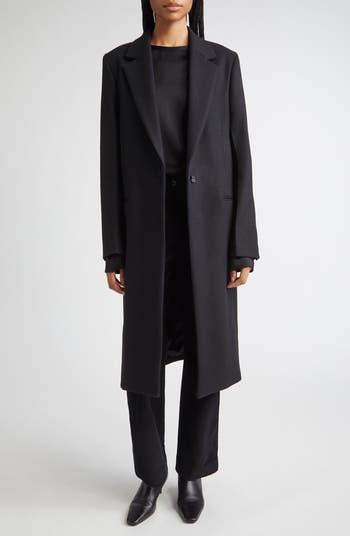 This classic coat is cut from a warm wool blend and tailored with high notched lapels and beesom pockets for timeless style.