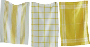 tag Classic Yellow Cotton Dishtowel Set of 3 Check Stripe, Alternate, color, Yellow