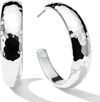 Hammered sterling silver catches light from every angle on these tapered hoop earrings.